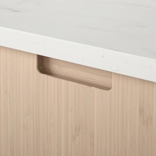 Vibrante y cálido con una sensación de asombro. Los frentes FRÖJERED están hechos de bambú natural, un material sostenible y resistente que es perfecto en la cocina. Los mangos integrados mejoran el aspecto limpio y moderno.